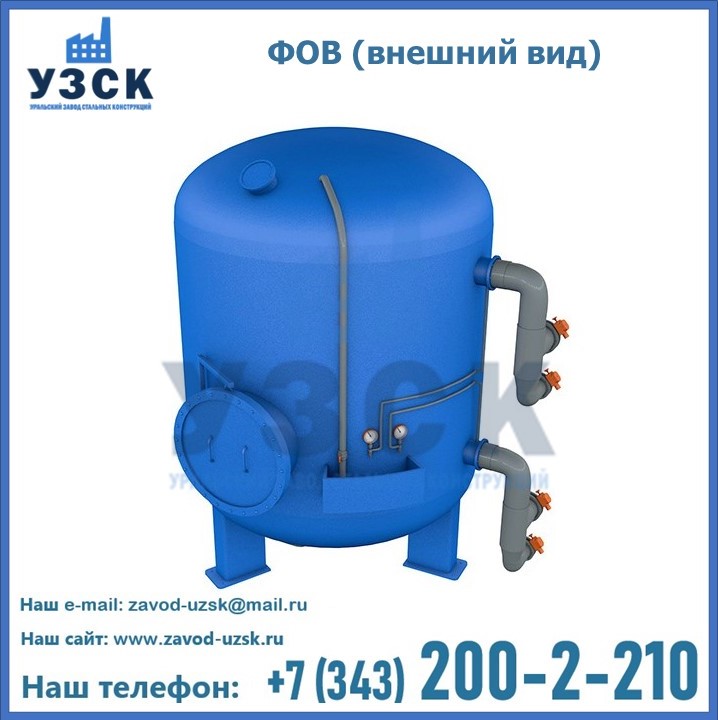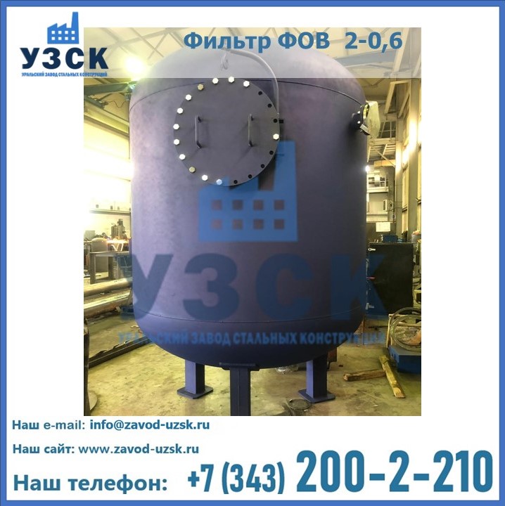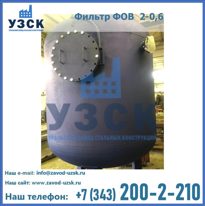 Удаление взвешенных веществ различного уровня дисперсности из рабочих жидкостей эффективно проводит фильтр осветлительный типа ФОВ (скорый или механический) — вертикально-цилиндрической формы установка, разработанная для систем водоподготовки различного класса. Оборудование представляет собой однокамерный агрегат для очистки воды рекомендованный для применения на станциях очистки стоков, в коммунальных котельных, на ТЭЦ, в промышленных отопительных системах и пр. Заказать производство ФОВ фильтров предлагает наш Уральский завод стальных конструкций в Белгороде. У нас можно купить фильтрационное оборудование различного класса и типа, в том числе фильтры ФОВ из нержавеющей стали.