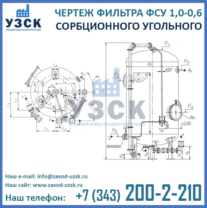 Наш завод (Уральский завод стальных конструкций) является производителем угольных фильтров, сам осуществляет изготовление и реализацию выпускаемой продукции. Приобретая фильтры ФСУ-1.0-0.6 в Белгороде от производителя, Вы приобретаете оборудование без наценок всевозможных посредников, а также значительно экономите свое время. Фильтры ФСУ1.0-0.6 завода УЗСК – это гарантия качества, кратчайшие сроки изготовления и цена, которая Вам понравится.